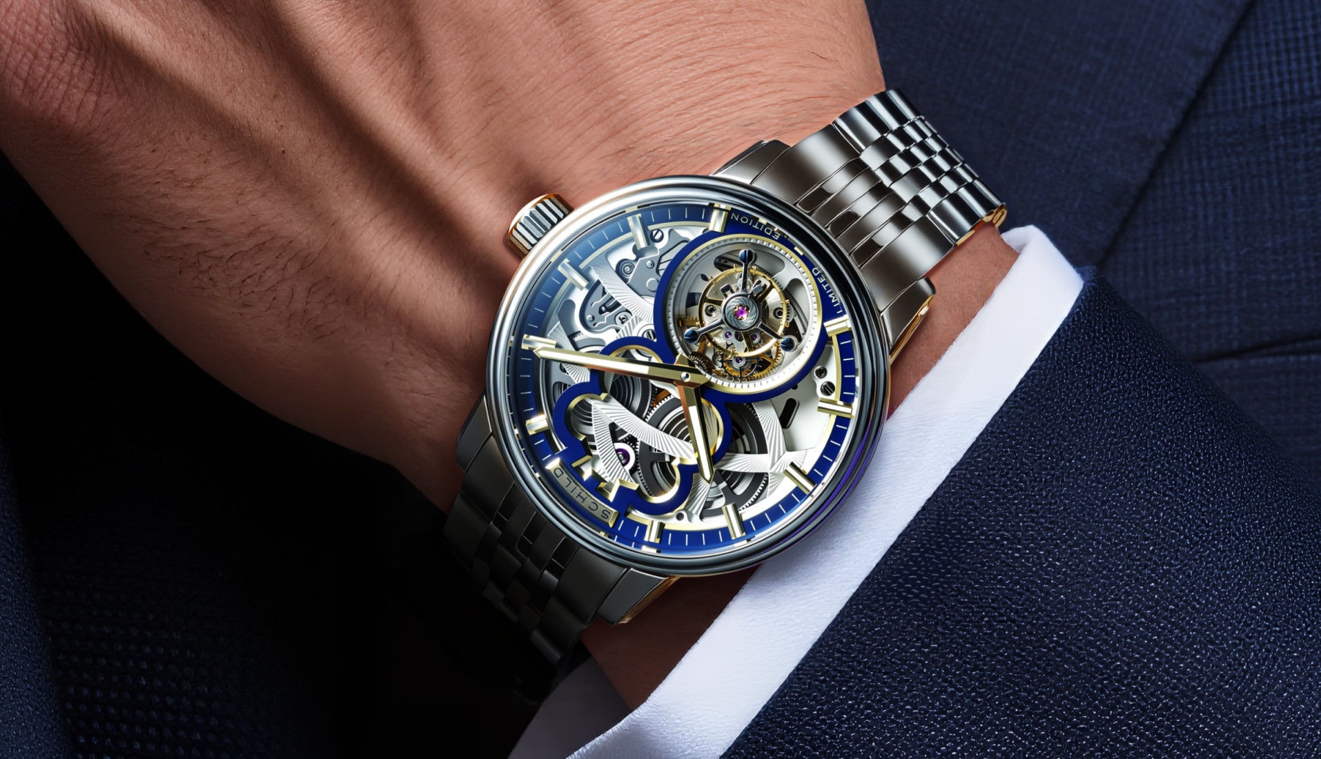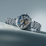 A timepiece of captivating beauty and technical mastery. The skeletonised design allows a mesmerising view into the heart of the watch, revealing the intricate interplay of gears, springs, and the mesmerizing tourbillon, as they dance in perfect harmony.